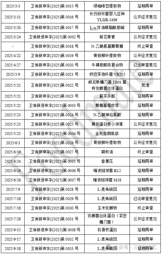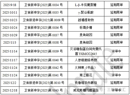 01、2025年新食品原料受理情况及进展跟踪