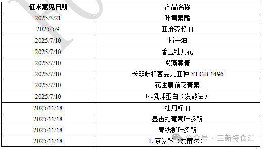 02、2025年新食品原料公开征求意见情况